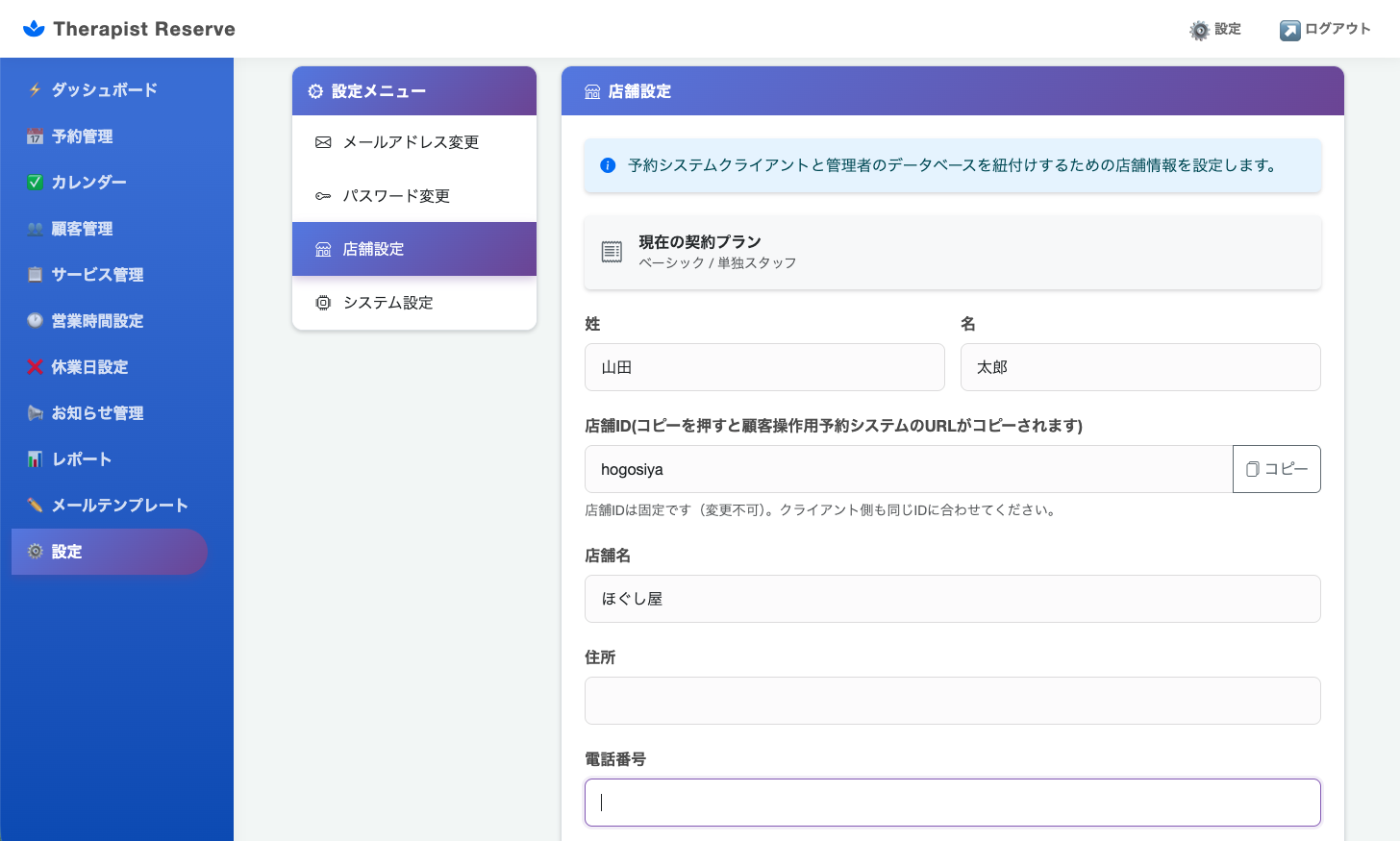 顧客側の予約システムは店舗毎にIDが違いサーバーと紐付けられています。